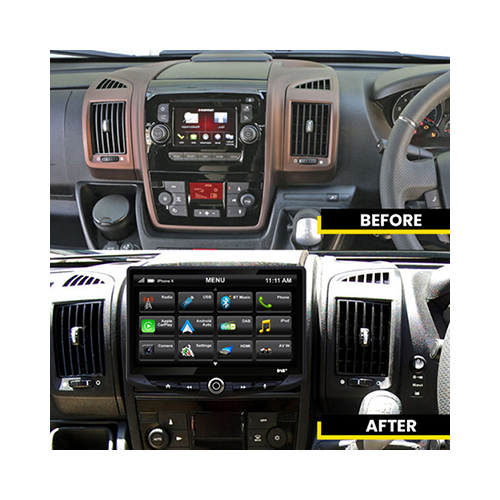 Dit 10-inch digitale touchscreen multimediasysteem biedt eenvoudige smartphoneconnectiviteit en ondersteunt populaire functies zoals Apple CarPlay, Android Auto, DAB/DAB+ Digital Radio, handsfree bellen en Bluetooth. Daarnaast is het voorzien van vier camera-ingangen, voor extra veiligheid en gemak. Behoud belangrijke functies en instellingen met onze voertuigspecifieke integratiekit.