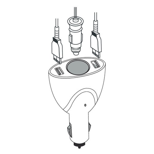 USB lader “Duo 3” – input 12 Volt – output 2 x 5 Volt 500 mA – 12 Volt – 1 stuks – max 5 ampere