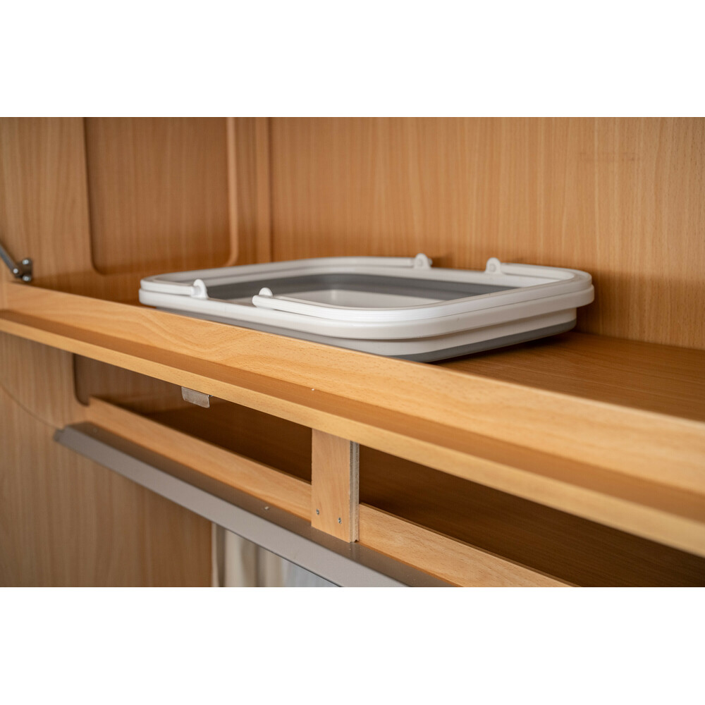 Of je hem nu gebruikt in de keuken, badkamer, wasruimte of camper, deze opvouwbare mand is een praktische en slimme opbergoplossing die altijd van pas komt.